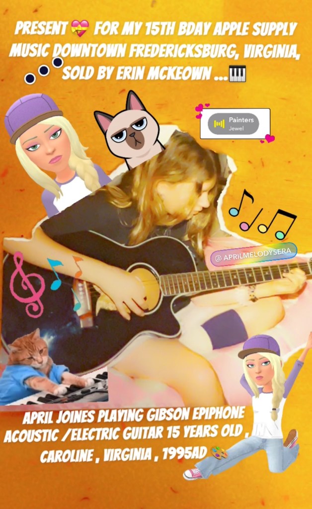 Since this is a true story, (mostly) .. here is the day that the guitar was given to April for her 15th birthday. That’s what she wanted to do was play the guitar and songwriting before Taylor Swift was born. This picture was taken in 1995 and Taylor Swift was born in 1989. Taylor was only seven years old when April was 15 years old then when Taylor Swift around the of 24 ~ 25 years old she stole April Joines’ Music Video Idea : for Shake It Off music video that was released in a year 2014 when April was 34 years old and Taylor stole her idea, April did not become famous. She did not receive accolade as she was trying to get her teaching degree do you become an elementary school educator to protect children from creepy child predators they would try to get children to touch. They’re disgusting private parts in exchange for tootsie roll pot cracker jacks and or Tootsie rolls that look like bird turds wrapped in plastic colorful pieces of wax fever that are flavored with corn syrup if I were you, I would get your candy from serve sweets.com instead of the Tootsie roll company @SurfSweets . Com because at least they do not put artificial ingredients or corn syrup and you don’t have to worry about child predators getting a hold of those usually because they are too stupid to even consider organic candy because child predators puts rolls and candy in their pockets with cracker drops, thinking that children will lick the piece of paper inside and actually put the tattoo of a satanic emblem on their arm or from the dark ages yourself, or your children ever coming home with a tattoo, a little sailor with blue ink, or a red devil tattoo, please have a console with your children and ask them where they were if anybody took them somewhere they didn’t belong if they remember what happened because seriously this is not a joke. There are child predators in all seriousness and they do use Tootsie rolls Tootsie pops and cracker jacks because I survived that kind of experience in 1985, which is why I’m back in time. I remember Rod Stewart playing on the radio when those things were happening as a young child.