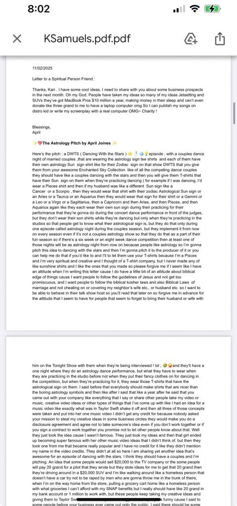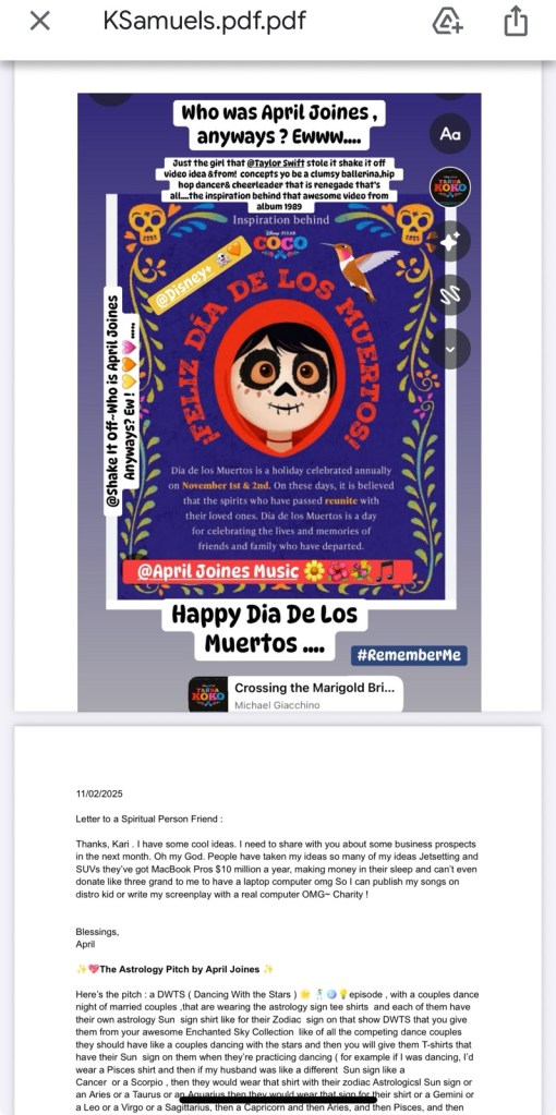 So here is the PDF that I sent on November the 11/02/25 that Celeste wrote me back and said that Kari Samuels does not read PDF, but just in case they did open it and take my idea for her to profit from financially by sending a proposal to them for an idea for the show before I had a chance to contact them. Here’s the proof that I had this idea and sent it to Kari Samuels, though they told me that they didn’t read the PDF so if somebody else on her team of people intercepted that and gave those ideas for her to profit from, I think they should let me know.