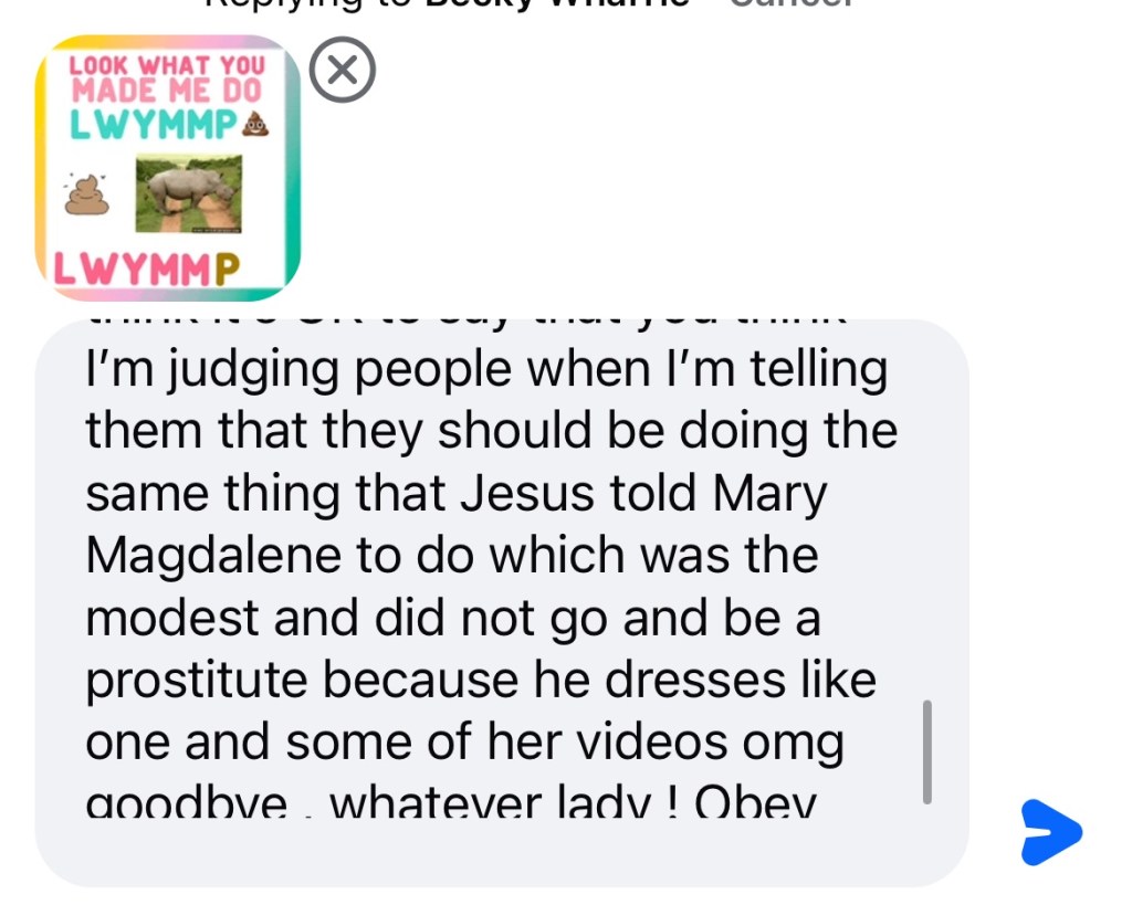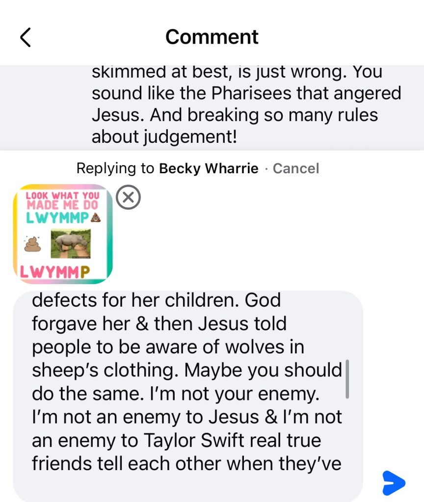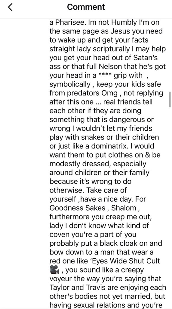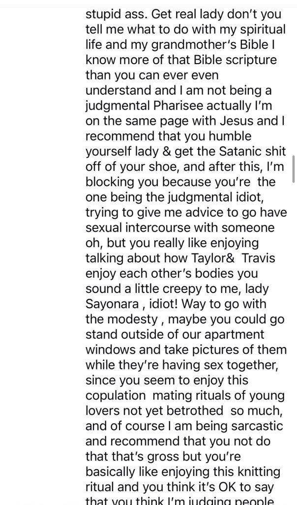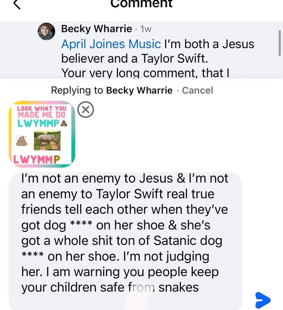 OK now sorry I had to come down hard on y’all but I do like Taylor’s fearless album her 22 album speak now lover album folklore album but I don’t like the video LYMMD and I think she should have it removed from the Internet so that kids don’t see it because it is borderline satanic if not satanic : it is , it’s sacrilegious..,,. and I don’t think Taylor is the same Mary so it would be best if she was just with humble herself a little and make an apology is what I think and that’s why I disagree with Olivia although she says go to a Bible study yes I study my Bible every day and can try to find those online, but I’m not so much worried about my own path on the Internet. It’s just children that come across things when they’re being sad or their influence from their older teenagers, brother or sisters that see those things and they are influenced by them and then they might falter on their spiritual path and think it’s OK to get a pet snake when that’s really a dangerous thing to do so I don’t encourage that. I think people should follow the biblical lot of Moses marriage and that people shouldn’t be following the doctrine of Solomon because he had 700 wives and 300 concubines and that was against the teachings of God so he was really being influenced by someone else and it might’ve been the devil so be careful you have to be aware of Wood and she clothing that’s all I’m saying and I am a fan of Taylor Swift and I like some of her duets that she’s done her lover album but I have I think cardigan is one of my favorite music videos of hers even though she’s taken some of my video ideas in the past or her people took the ideas for shake it off from me when I shared a conversation with my friend over the phone other people stole my ideas and gave them to her and I didn’t receive a mention or any credit she’s got 84 million followers and I have 30 such as a life of a Christian! Welcome to martyrdom ! Just writing about this is like committing career suicide if anybody says anything against Taylor, then you’re like good luck trying to become popular because she has 84 million followers, but I don’t care. I want to tell people the truth what is good for them and what is right and if I see someone doing something wrong, I’m not gonna just be quiet just to try to have more followers. I think it’s more important to do the right thing and the Bible says to speak the truth to each other and a be as bold as a lion, so that’s what I’m doing. Bless you on your path everyone , may God bless you and keep you safe ! ☁️☁️☁️💛☁️💗☁️☁️☁️☁️