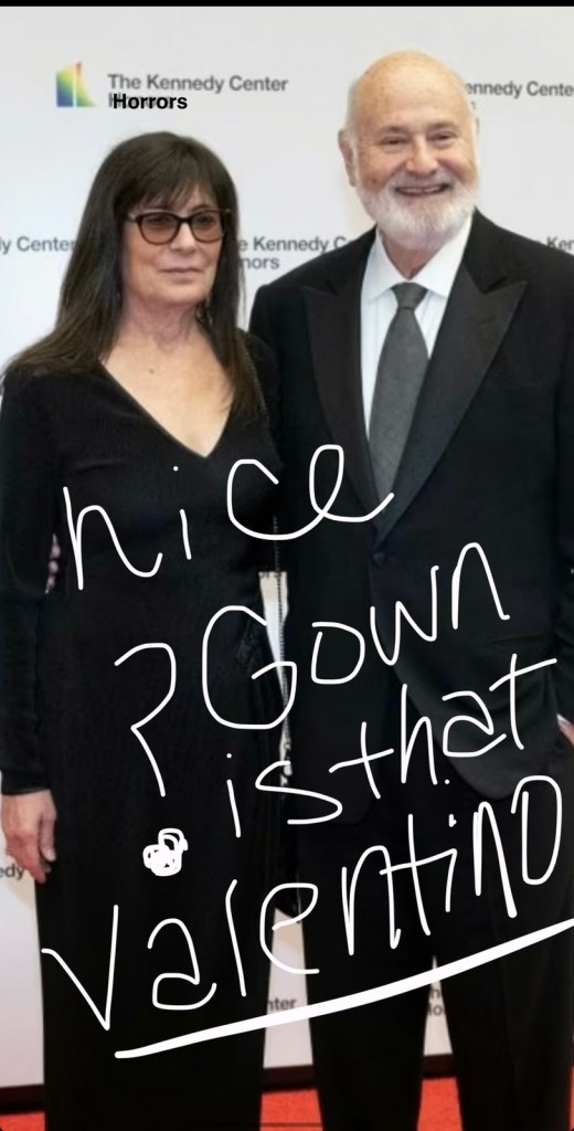 To go with your bullshit just got brainwashed Avenue by idiots and their fake news saying that this guy either was murdered by his own son or it’s trying to make it look like he was murdered so that he can go incognito and live on the East Coast, where people in Hollywood would like have a bunch of compassion from him. Oh the poor guy died a week before Christmas yeah because he’s evil and enough to try to take the spotlight off of Jesus and any man that says that he would murder an innocent girls child is like the equivalent of king Herod so it’s funny the timing of it and so I didn’t even realize that Rob Reiner is the same guy that held my husband hostage until I did some research and the past two weeks so folks hide your kids and also you know if a man shows up that looks like this egg head motherfucker I’ve seen them two times on the West Coast and a guy that looked just like him trying to grab me around the way so what was he trying to do steal the princess bride, but wasn’t said that he could stand by me and logged me down the aisle it was so he could murder me folks I have respect for Zoe. I love her. She’s one of my favorite actors. I don’t know how many other people were in films of his with Castle rock production that are innocent folks, but this guy is a motherfucking loser and I hope that he did have his throat slit as evil as that may be he was going to try to murder my future children and I don’t even have children because I was scared to, because if I did, I was afraid that this fucking guy was gonna murder them so I hope this egghead motherfucking idiot did die and I hope that his son gets bail so that he doesn’t have to live the rest of his life in jail for murder in that motherfucker OK so he was gonna try to have sex with my ex-husband and butt rape him and it looks like his bride lady looks a lot like Valentino put a wig on of course it’s probably not him or her however it’s just you know I hope that the poor kid if he did murder, his dad can live his life without having you know any issues with I don’t think he would murder normally anyone unless they deserved it so I’m gonna say I don’t know what he went through with his father or if his father even paid him to make it look like he murdered him or not there could be all kinds of different scenarios. It’s difficult to say because Hollywood is full of scandals and lies, unfortunately and you have to be careful because there are the things of the Bible says that in the end times things that are considered bad will be considered good and then to be aware of lives and she’s clothing anyways be safe everyone and like I don’t know what’s gonna happen in the future, but I hope that his son gets bail meet a nice girl that he can have kids with that will stay away from this freaking toxic repellent bum **** Rob !