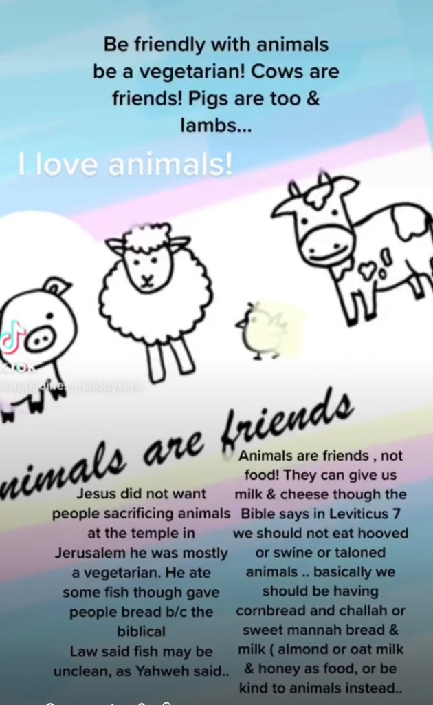 The Jewish books of the Bible are replete with instructions of things that we should follow like kosher guidelines dietary guidelines, which are also considered as commandments so when people are not paying attention to what they are eating and they’re eating swine or pigs it upsets the Lord in heaven, which may be why he’s flooding lands with holding rain, creating wind, storms, hail, and drought, and all sorts of things are happening with the weather patterns yet it’s probably because people are disobeying those things that he told Moses to do which were what we were supposed to do ultimately because Jesus was Jewish and so was noses, but Jesus came to pick up where Moses left off and kind of like when you’re running a marathon and you have to pass the torch to the next person he passed the torch to Jesus, so it was his responsibility to do with the Lord said which was keep on trucking basically teach people what they’re supposed to do and not do and so Jesus told people not to slaughter lambs he said to feed them and was it not so much in a literal sense but a symbolic one, but he really did care about sheep and they didn’t have cars or vehicles back then so when he went from town to town , he warned people not to sacrifice animals, but when they asked him to fish he made them bread, but he told Peter in that same time to feed his sheep and feed the land so he was telling people to eat bread not to eat lambs, even when they were fishing he encouraged them to make bread. He could’ve left them without the bread, but he made 5000 loaves for them on the mountain side. It wasn’t a mountain side. It was on the seaside. Then after he was crucified, he went to the mountain of Olive like the amount of olives where they had olives and olive oil and bread like if you go to a brick oven pizza place and you have pizza they give you bread, dough and olive oil and then they put cheese on it and tomato sauce and it’s delicious and you don’t have to put pig meat a.k.a. pepperoni or that’s really just the filing your pizza cause you’re putting the flesh of something that’s unclean and pure. You’re not even supposed to touch a pig according to biblical kosher they are unclean, but you should be careful not to eat them because they can give give you food poisoning, soup, people eat lambs he was Jewish people shouldn’t be eating lambs. It’s not nice to cut their heads off.