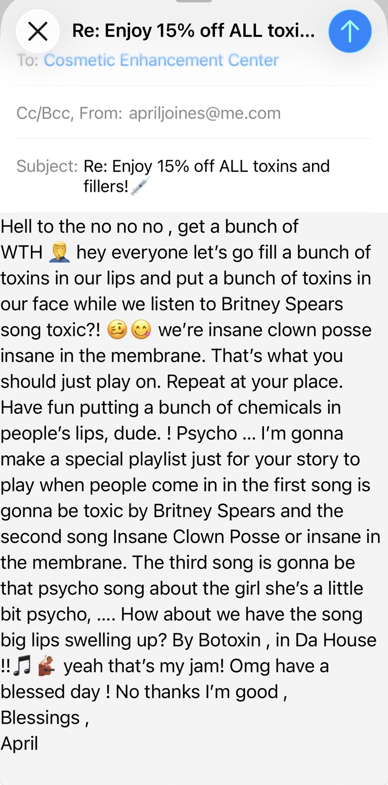 Omg. So at least they’re admitting that it’s toxins like they’re not even trying to lie. They’re like hey everybody I’ve got a thing of toxins aka a bunch of poison. Would you like it in your lip so it swells up or would you rather us just go get a poisonous viper and let that bite your lip.