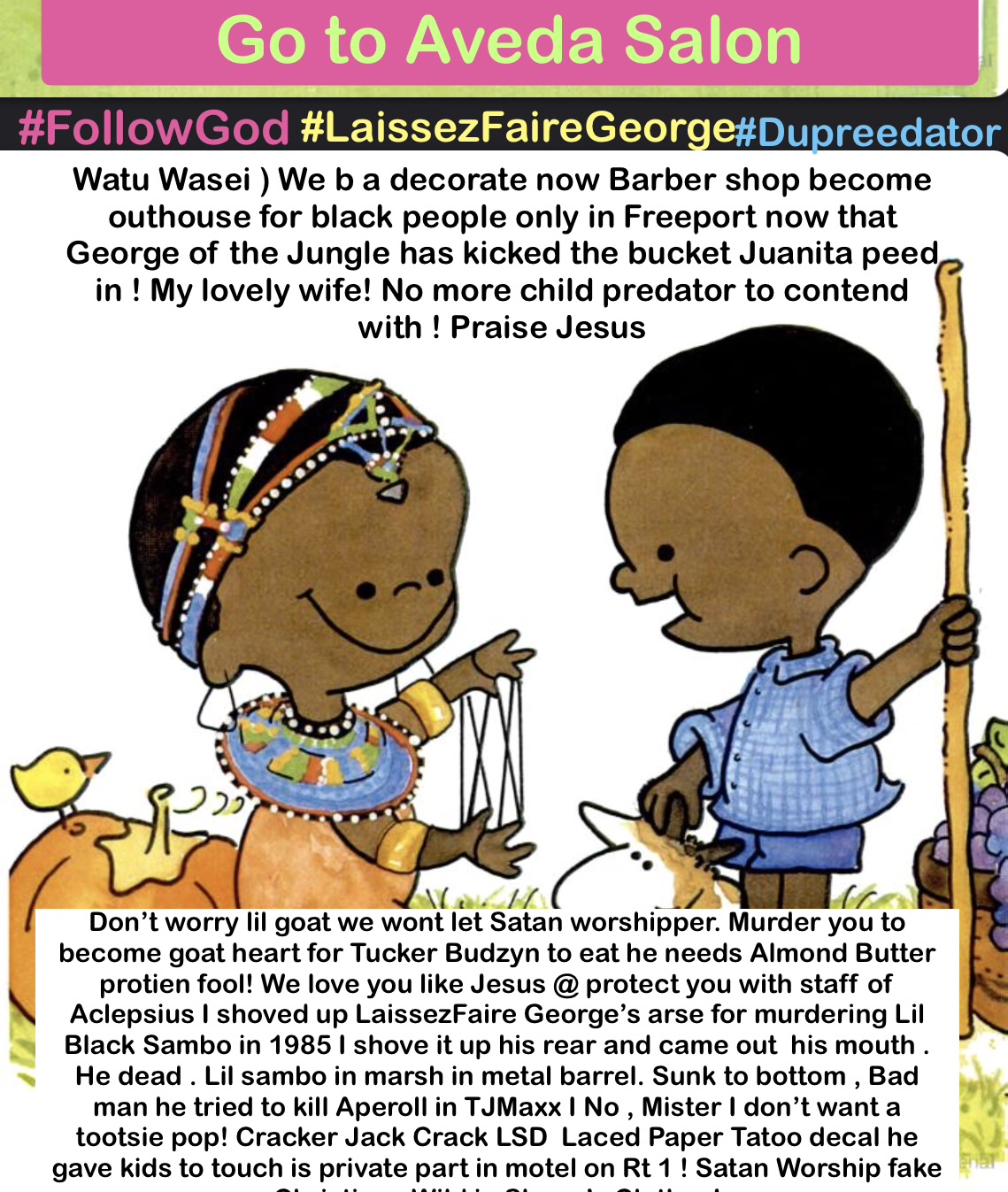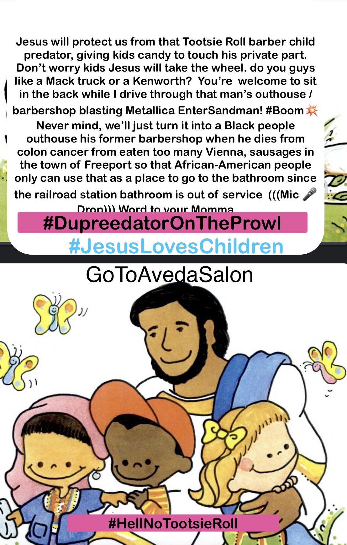 ⚠️If you’ve ever come into contact with an old man, that’s a child predator that likes to keep a gun in his brown leather coat or his black one and you’ve ever asked yourself. Why does a man want to mow the lawn and wear a leather coat in the month of July the answer is because he’s probably got a leather coat on when it’s not cold so we can keep a gun in his pocket cause he has something called a guilty conscience.. so get to know who your neighbors are because …. don’t let any of them , like for example a 40 year older than yourself person be around your kids just because they go to a catholic mass on Saturdays one day a week and the rest of the week is 666 mph headed straight in the Satan’s arse crack! ⚠️ it’s a long story. I don’t feel like going into the details right now. But just get to know who your next-door neighbor are and who the local barber is make sure before you shake their hand that they haven’t jerked off in front of little kids after they just gave them Tootsie rolls or Tootsie pops, cause he might’ve forgot to wash their hands at the local motel in route one after they got some little unsuspecting girl or boy to get into the Chevrolet suburban or their GMC or their Dodge Ram after they pick up some unsuspecting kid that’s like outside walking down the street and they pull them into a united ambulance span and drive off to a motel and Rt 1 are the ears closed in the northern states just so that they can try to give little kids Tootsie rolls and Tootsie pops after making them lick them piece of paper that comes from a cracker jack box of caramel popcorn so they might be laced with LSD don’t believe me. Why would anybody want to give a little kid a satanic look in decal tattoo so they can bring it home to their grandma’s after church on Sunday after they were stolen when they were playing outside kicking a soccer ball around in the front yard after church and some weird navy blue van came up in a man with a slide in door opened in the back while the driver put the pedal to the metal after the guy in the bat got out and grab the kid that was kicking a soccer ball in the front yard by his mom didn’t see him being taken into a van when the door slammed and the dude drove around the block just to go to a motel on Route one so that he could pull some little kids pants down or try to rape them or pull his private part out of the zipper hole in his jeans and put a gun up to the kids side when they try to use the little plastic phone to dial 911 those old-school phones that little children don’t even know how to use nowadays but the little boys mothers in the backyard with the other children with the white picket fence around the backyard for her daycare job that has no idea they’re a little boy was just stolen or her little girl and then she’ll probably find him being dropped off about less than an hour later after they’ve had their way with a kid in a motel room. The child predators can be anyone it can be your local church folks or your local vice principal at a school or your town barber no one is safe Reali from child predators and just because you think somebody’s a good guy cause they give you a snake not a real one to do the damage from your plumbing being clogged and they live across the street and they try to help you unclog a sink or refer a plumber to you. Does it make them a good person one day because the next I’ll be bringing a real snake and a duffel bag across the street and put it down next to the little porch so that this big snake that cannot survive during the winter by itself that the guy took care of where he keeps his lawnmower, parked in his shed in an incubator that he feeds probably disgusting rats and mice that he caught during the winter so that the thing grows big because there is no way in hell that a snake can grow up to 2.5 feet long and survival Winter, and Maine on the freezing cold ground that’s completely covered with snow from the month of January February in March and April. It melts but then in the month of May it’s still pretty cold outside doesn’t even become warmer temperatures until around the middle of June when we officially have spring time in Maine though there is no way as snake can survived by itself so when you’re creepy, town barber likes to feed them as a pet because he likes to read satanic Bibles and not let anyone know at the local church. Know that he likes to do that back in 1985. I’m just telling you get to know who your neighbors are cause if you don’t you might find out 40 years later after your child tells you that the barber put a gut up to their head in a motel in route Wood and said that they would kill your mom and you if you ever told anybody that he pulled his private part out of the zipper hole in his jeans and tried to pull your hand to feel his private part before you kicked him with a flip-flop and had to jump off the bed and get his wife who we just grabbed five minutes earlier and wouldn’t let her call the police wouldn’t let you call the police and then he’s given $10 haircuts 40 years later because the statute of limitation protect protects him and he didn’t retire at 63 to get Social Security and Dad. He’s gonna be a barber I guess from the age of 83 to 90 until he joins the let’s pretend to be dead club. For those people that pretend that they die because their wife passed away and they want to be a child predator and not go to jail because the statute of limitations can only protect them to an extent when they’re children that were victims of theirs, not their own children cause they won’t sexually abuse their own son or daughter and grandchildren or children in a lot cause then they know that they could get in trouble for doing that so they make sure it’s outside the family so that guy gets to get Scott free while innocent people are being framed and being called child predator is like my Cherokee Grandad who is not a c