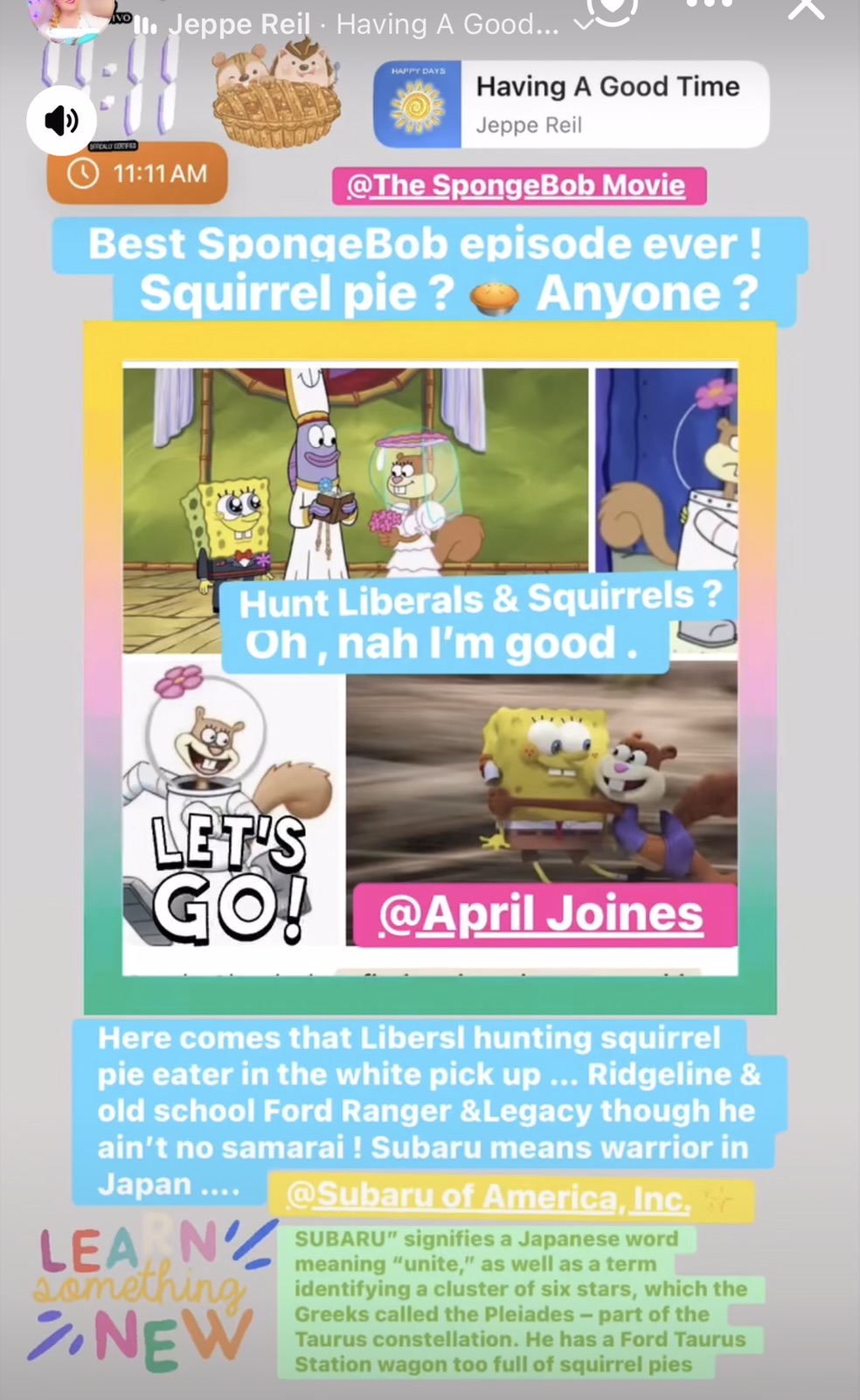 🌸🌸🌸🌸🌸🌸🌸🌸🌸🌸🌸🌸🌸🌸April Joines is an actress , freelance writer, blogger , artist & singer & songwriter in Freeport , Maine . When she’s not in the dodging squirrel pie 🥧 making rapists … on the prowl ….like Pig Pepper Pete , etc she’s hanging out with Sandy the Squirrel protecting her from becoming their next Squirrel pie …she enjoys being in the wilderness though cant half the time b/c looking out for dodgy blokes who have make & female minions like Lynn with the fake obituary that was married on Friday the 13th they said and a horror movie buff married to Dennis Grenier & looks like Gargamel’s daughter . She enjoys the outdoors when possible although not the Devil Bridge where she was invited to in Lewiston by Old Buckner of the Northern Ogress Territory or being grabbed at night around the waist when walking home from the LLBean being lunged at by big chubby white bald men that look like Ron Reiner didn’t they say he died ? 🤨🤪Who sent them , so he should put a dog leash around my waist to pull me to the railroad bridge? Hell no , Not Today Satan. F • yew !